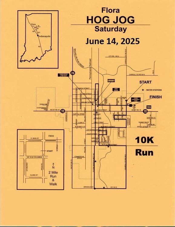 This certified 10k race is flat and fast. Race starts at 8:15 a.m. and winds through the picturesque town of Flora.